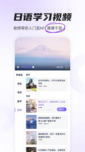最让我喜欢的是它的趣味视频模块,把日本的文化、生活场景融入进去,学起来 totally 不枯燥。比如看动漫、追剧时用的日语都能在app里学到,简直是为我量身定制的学习内容!而且它还整合了各种考试单词和文化知识,对于想参加日语考试或者去日本旅游的人来说特别实用。