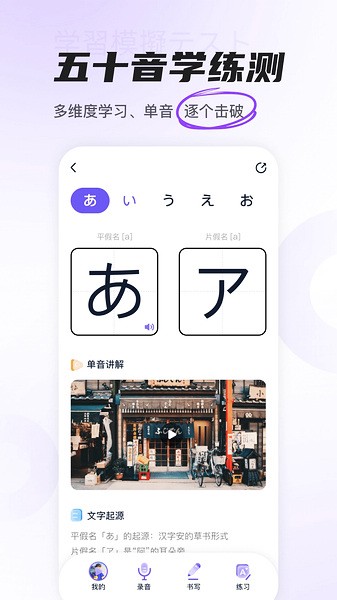 - 50音视频讲解:从起源到发音到字形,详细讲解日语。