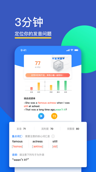3、获得多维度即时反馈,清晰诊断发音问题;