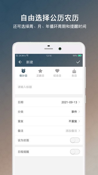 可添加生活、工作、生日、学习、纪念日等