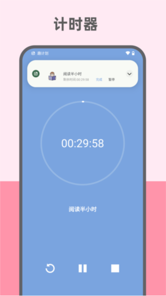 当开始完成一项需要计时的打卡习惯时,手机自动弹出专注计时界面,不用额外记录时间,帮助节省精力,可以更加专注在完成打卡任务上。