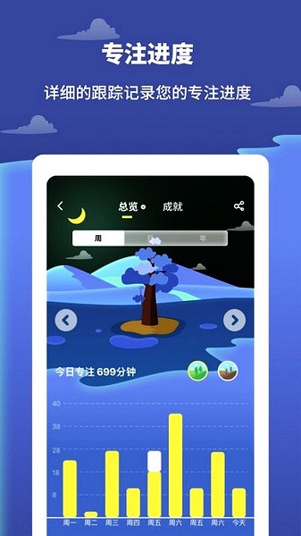 6、专注成果反馈:目标完成即可种成大树,失败即惩罚让专注不再枯燥