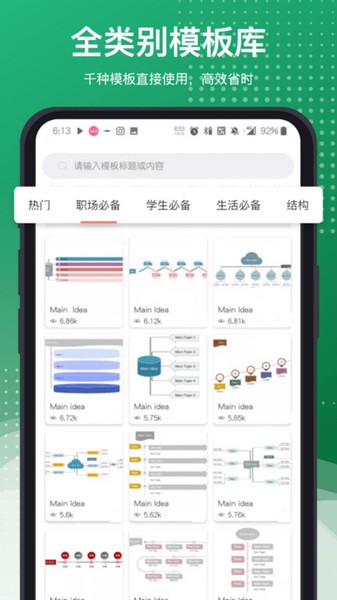 3.【模版】中则有涵盖多个方面的思维导图模板,也能够在搜索框中查找自己需要的内容。