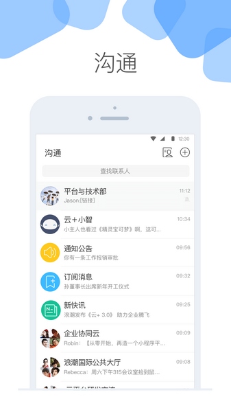 围绕工作沟通:在聊天中内置智能对象,可围绕审批、报告等各种业务对象进行沟通,以同步信息、共享知识、激发创意。
