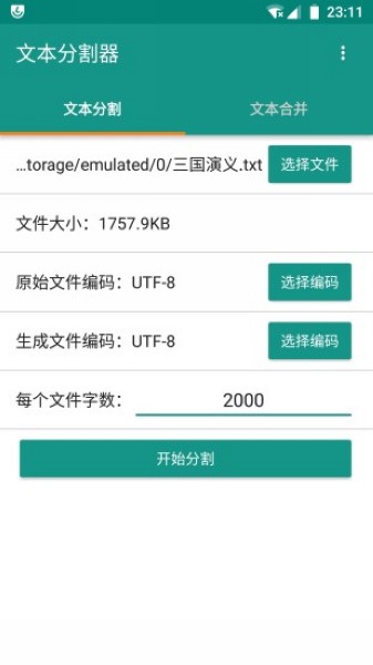 5、开始分割:设置好所有参数后,点击“开始分割”按钮,文本分割器将自动开始工作。