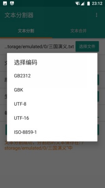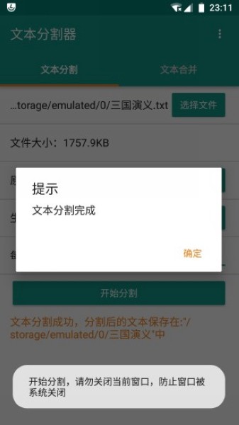 4、可以自由选择保存的文件夹,合并和分割完成后会告诉你文本保存的文件夹以及路径