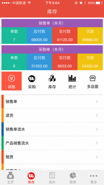 4、报表数据:收支库存,一目了然