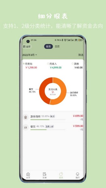 小青账支持1级分类、2级分类各种报表统计,轻松知道钱的去向,及时修正消费习惯。