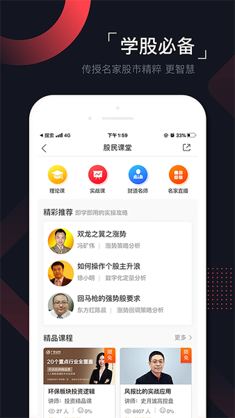 3.在【发现】里能看到各大名人的讲解以及脱水研报