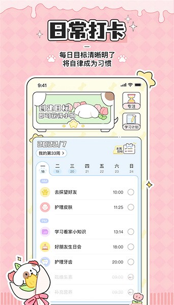最近发现了一个超 cute 的时间管理App——口袋周计划,它不仅界面简洁清爽,还充满了各种可爱的元素,简直是拖延症患者的福音!我最喜欢的功能是它可以让我把每天的任务都记录下来,还能生成待办清单,这样我就不会忘记要做的事情了。最棒的是,它还会在固定时间提醒我完成任务,帮助我克服拖延的习惯。