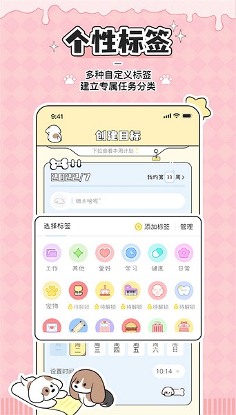 每一件待办的事都可以记录下来,会获得小奶狗卡卡,同时也会自动生成待办清单,让每日目标变得清晰明了。设置好时间后,还会到点提醒你哦~