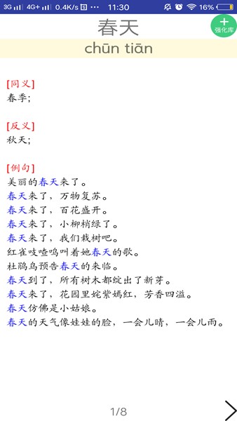 3、支持进行字词学习,选择字词查看释义后,可以播放字词的读音;