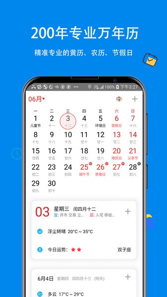 2.提供200年万年历黄历,法定假日和节日提醒;
