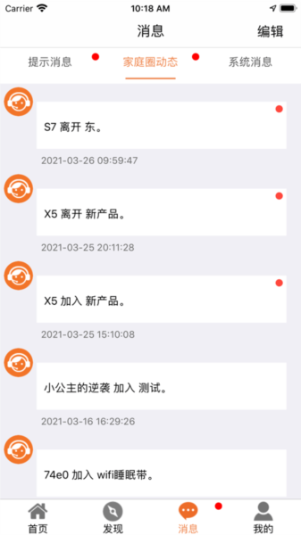 可以通过消息查看最新的通知和报警信息,了解家人的位置安全情况;