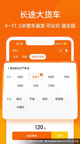 够全!五大车型,大货车车型:6米8、7米6、9米6大货车开通。