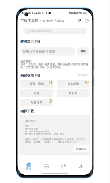 1、下载工具箱支持56种下载协议,可以一键下载、管理各个应用之间的管理数据