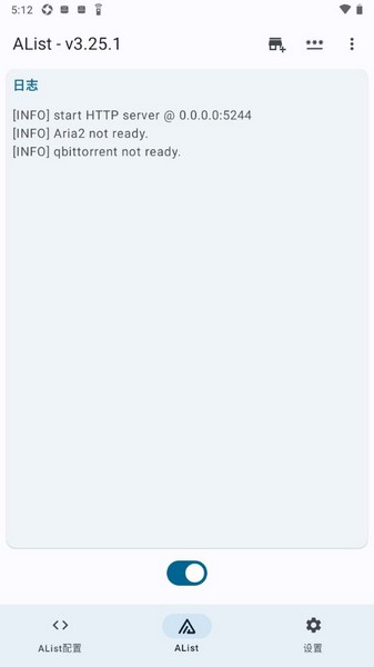 2、启动alistlite服务后,建议在电脑上通过访问服务地址来进行AList的进一步配置。在alistlite界面,点击右上角的开关按钮,即可开启或关闭AList服务。服务启动成功后,将展示AList的前端页面,并显示当前绑定的IP地址和端口信息。