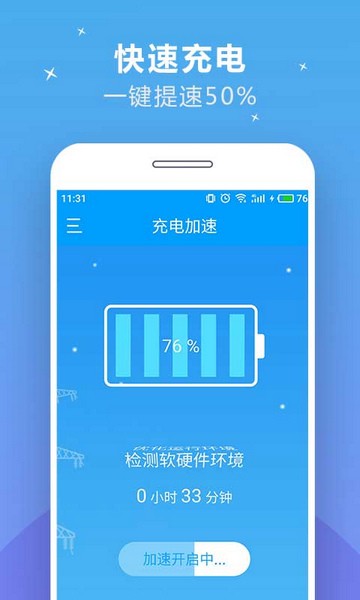 1、充电加速器快捷版为大家提供了充电、修复、优化等功能,其中充电功能可以帮助大家节省充电时间,并且还能显示预计所需充电时间;