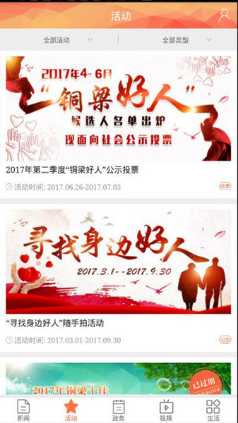 在活动界面,可以浏览最新的活动,还可以报名参加;