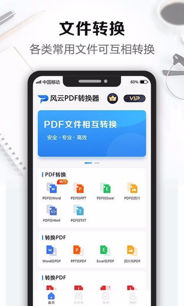 风云PDF转换器手机版是一款主打PDF文件转换的软件,若是经常需要制作多种各种的文档版本的话,那么不如使用这款软件转换吧!其可兼容各种文档格式的转换操作,例如PDF转word、PDF转图片等,满足用户的使用需求!同时软件还可支持多个PDF文件的合并操作,一键即刻融合文件,方便快捷,让你无需再手动操作,办公更高效!