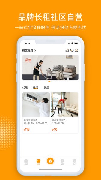 一、打开微棠青年公寓app,找到生活界面,点击下方方框框选的微堂洁;