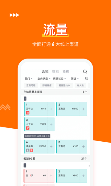 1、整租,合租,房源状态轻松的掌握,全国六大线上渠道。