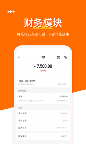 3、【财务清晰】资金流动一键查询,实时掌握财务收支状况,收租信息一目了然。