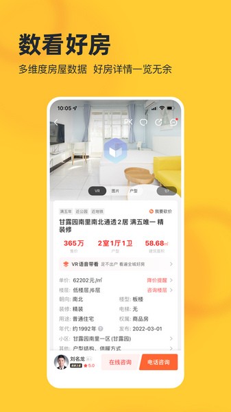 有好的交互界面,精致的房产信息浏览体验,风格清新明快,颜值更高