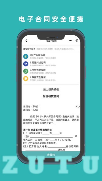 为用户提供了线上的电子合同的签订,让你和房东来随时签订需要的电子合同。