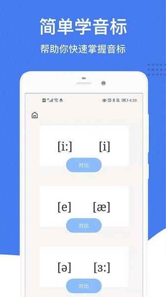 这款英语音标App看起来挺实用的,专门教基础音标的发音。里面有48个音标的学习内容,每个都有发音示范和技巧指导。最棒的是有语音评测功能,可以对比自己的发音是否正确,还能通过录音来练习和改进。还有口型图和发音方法,方便用户模仿学习。App里还加入了相近音标的对比,帮助区分容易混淆的音,比如/a/和/o/的区别。