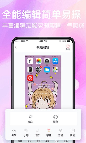 看看录屏app是一款非常专业且好用的手机录屏软件,通过该软件大家可以摇一摇手机就自动开启和停止录屏,帮助大家快速进行录制,操作更加便捷,并且软件支持各大游戏视频录制,非常适合游戏主播们来记录下自己精彩的操作。除此之外,软件内为用户们提供了非常丰富且专业的图片和视频编辑功能,录好的视频内容中可以添加各类滤镜、贴纸和文字等,让视频变得更精彩。