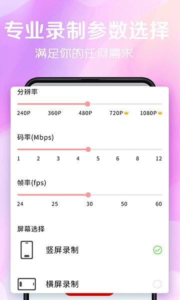 超高清画质流畅录制,支持多种视频分辨率、码率和帧率选择。