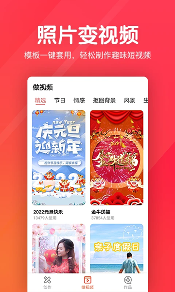 1、海量模板,一键创建视频,只需提供简单的图片即可生成视频