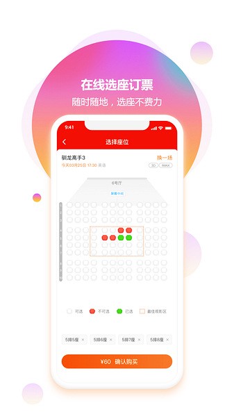 3、在线选座,快捷购票,卖品商城,精彩活动。