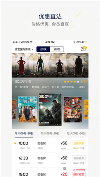7、影院优惠活动及时在此发现,能够立即抢订特价电影票