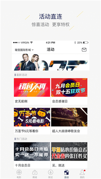 5、优惠同步,影院推出的最新优惠活动可以实时同步app端;
