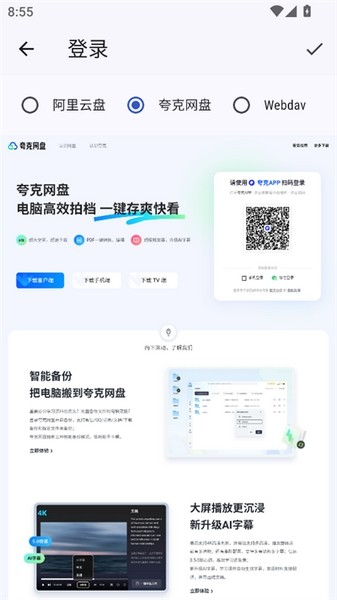 无缝对接阿里云盘、夸克网盘,同时支持 WebDAV 协议,无需繁琐下载步骤,直接在线播放云端资源,让你随时随地畅享影视、文件,尽享便捷与高效。