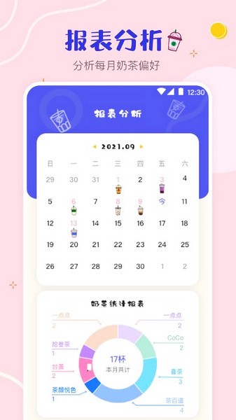 一键查看一年内喝了多少杯奶茶?最爱喝的奶茶品牌?哪个月份喝奶茶最多?最长多久没有喝奶茶?