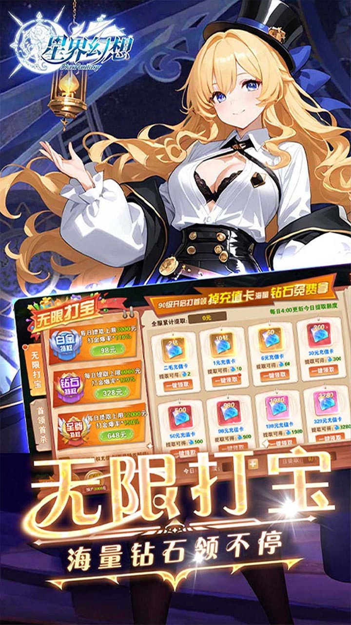 游戏福利也相当丰厚,比如每日在线送海量钻石,创角就送巨额战力礼包、时装、武器、发型等,还有各种登录奖励如坐骑、头饰、星灵等。离线远征玩法更是懒人福音,挂机也能轻松获得奖励。