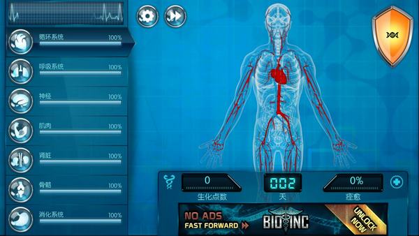 当一个系统被破坏到0%,其他身体系统即使不点,也会减少百分比,具体参考不同关卡的人体情况。前期几关优先攻击神经系统、心肺系统和肠胃系统都可以轻松过关。