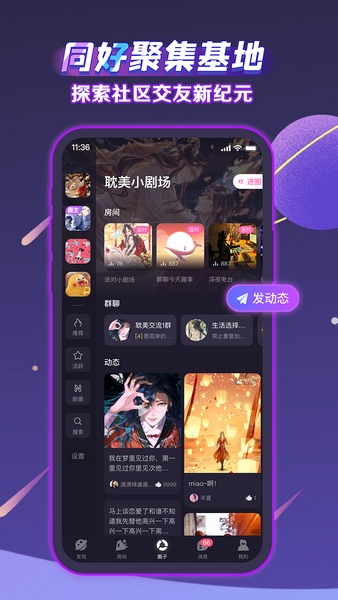 左右一滑,就能找到你喜欢的声音和有趣的人,还可以和TA一起合唱一曲、演绎一段台词。
