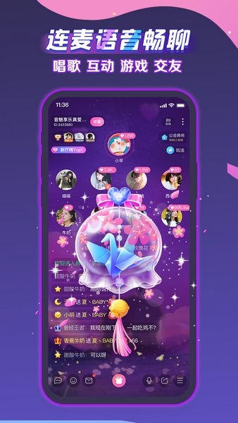 1、可以开启零距离多人一对一语音社交体验,让大家通过平台来认识。