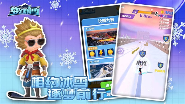 通过不同冰雪场景的挑战,可以快速提升滑雪技术,以及滑雪极限运动技巧;