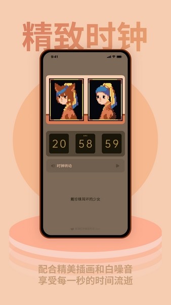 每款主题时钟都有专属的精美像素插画,使用时钟的同时感受色彩与时间的交错;