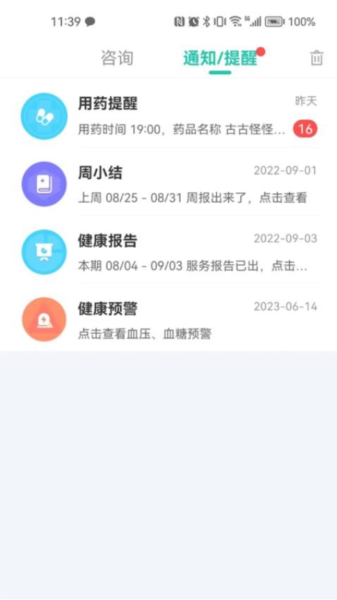 软件支持用户设置用药时间提醒,到时自动提醒用户服药。