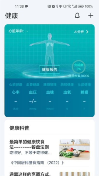 「卫和健康」为用户提供基于心率、血压血糖、血氧、睡眠、运动等层面的数据分析及解读,心脏安全数据分析、各类指标异常情况警示,让用户实时了解自己得健康状态。