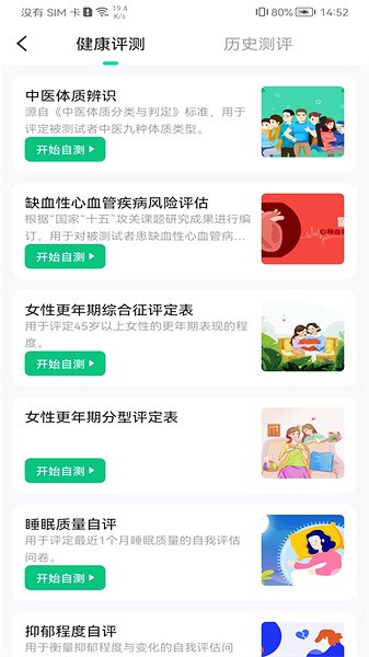 【健康自测】帮助用户细致了解自身健康问题,提供更加完善的健康指导。