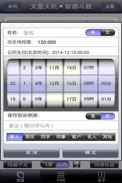 生辰输入界面使用说明