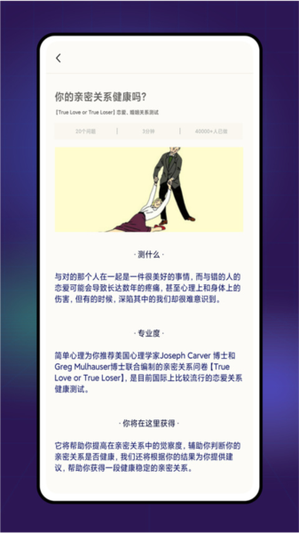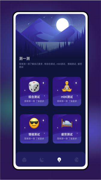 1、多种有趣的测试帮助用户治愈和减轻压力,并具有自我评估和调节情绪的能力,自我调节压力和情绪。