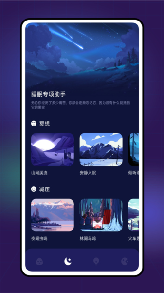 我挺喜欢这个 app 的地方在于它的功能很全面。比如,它不仅有冥想训练模块,帮助你放松身心,还能通过调整呼吸方式缓解焦虑,甚至还有积极自我暗示的功能,这些都能很好地提升你的专注力和自信心。特别是它的助眠音乐库,涵盖了100多种类型,离线也能听,非常适合晚上用来放松心情。
